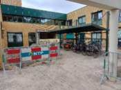 We willen ook aangeven dat de parkeervakken bij de hoofdingang niet meer gebruikt mogen worden. Dat zijn de vakken bij de huidige fietsenstalling als ook de vakken bij de bosrand om de veiligheid zo optimaal mogelijk te waarborgen
