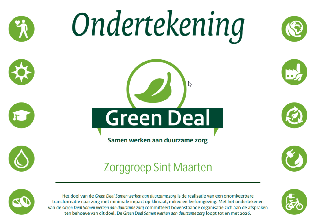 2024 was een jaar waarin Zorggroep Sint Maarten opnieuw belangrijke stappen zette op gebied van duurzaamheid. Door de ondertekening van de Green Deal Duurzame Zorg 3.0 committeerden wij ons aan het realiseren van groene en klimaatneutrale zorg. Dit jaarverslag biedt een overzicht van onze inspanningen, behaalde resultaten, en plannen voor de toekomst. Samen werken wij aan een duurzame toekomst.