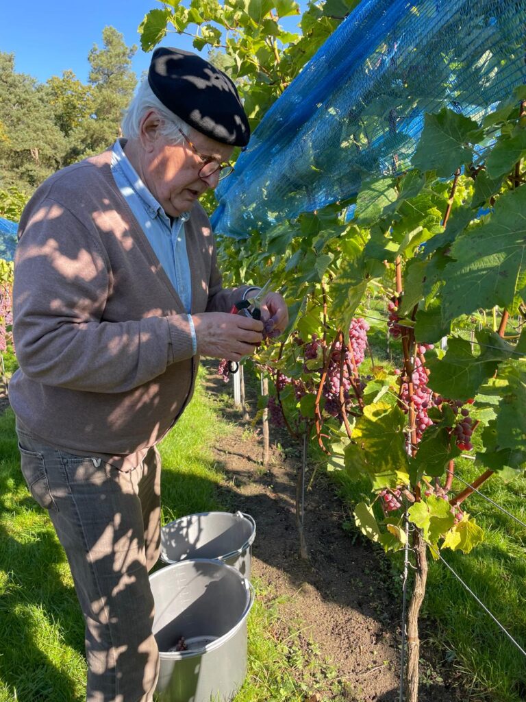 Hans (81) vertelt enthousiast over zijn tijd bij De Wijngaard. “Ik heb ‘Hansheimer’,” vertelt hij met een lach op zijn gezicht. Hij komt hier twee dagen per week en geniet volop van de activiteiten en de prachtige natuur. “Als het lekker weer is werken we in de ochtend in de wijngaard. En ’s middags gaan we dan bijvoorbeeld wandelen en hebben we daarna de vrijdagmiddagborrel. Dat is erg gezellig. Soms doen we dan nog een spel, zoals laatst ‘Hitster’. Dat eindigde met een polonaise om de tafel. En we doen weleens uitstapjes. Zoals naar Oald Bleank, het Schoolmuseum en de Twickelse Houtzagerij. En ik heb hier Sinterklaas en Kerst gevierd.”