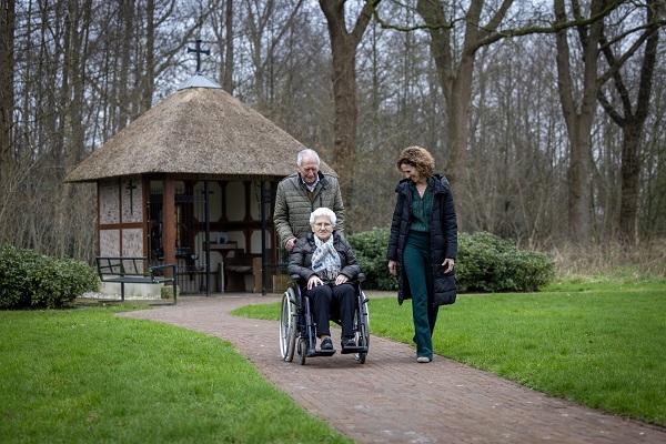 Als het weer het toelaat gaat Gerard een rondje wandelen. Eerst met Agnes. Meestal gaat het richting het kapelletje op het terrein van Gravenstate. Hij weet dat hij haar daar een groot plezier mee doet. “Ik zing daar altijd: ‘Ik ben een kind van Maria’, dat vind ik zo’n mooi lied”, zegt Agnes. Elke donderdagmiddag wandelt Gerard ook met andere bewoners. “Tijdens het wandelen kom je snel in gesprek met elkaar. Dat is fijn”, zegt hij. Zodra hij weer binnen de muren van Gravenstate is, haalt hij zijn vrouw op om gezamenlijk met de wandelaars koffie te drinken. Een win-win-situatie.