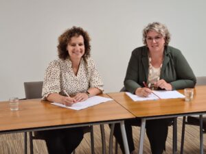 Op de foto: Patricia Bangma, raad van bestuur Zorggroep Sint Maarten en Joyce Berger, bestuurder Medisch Spectrum Twente