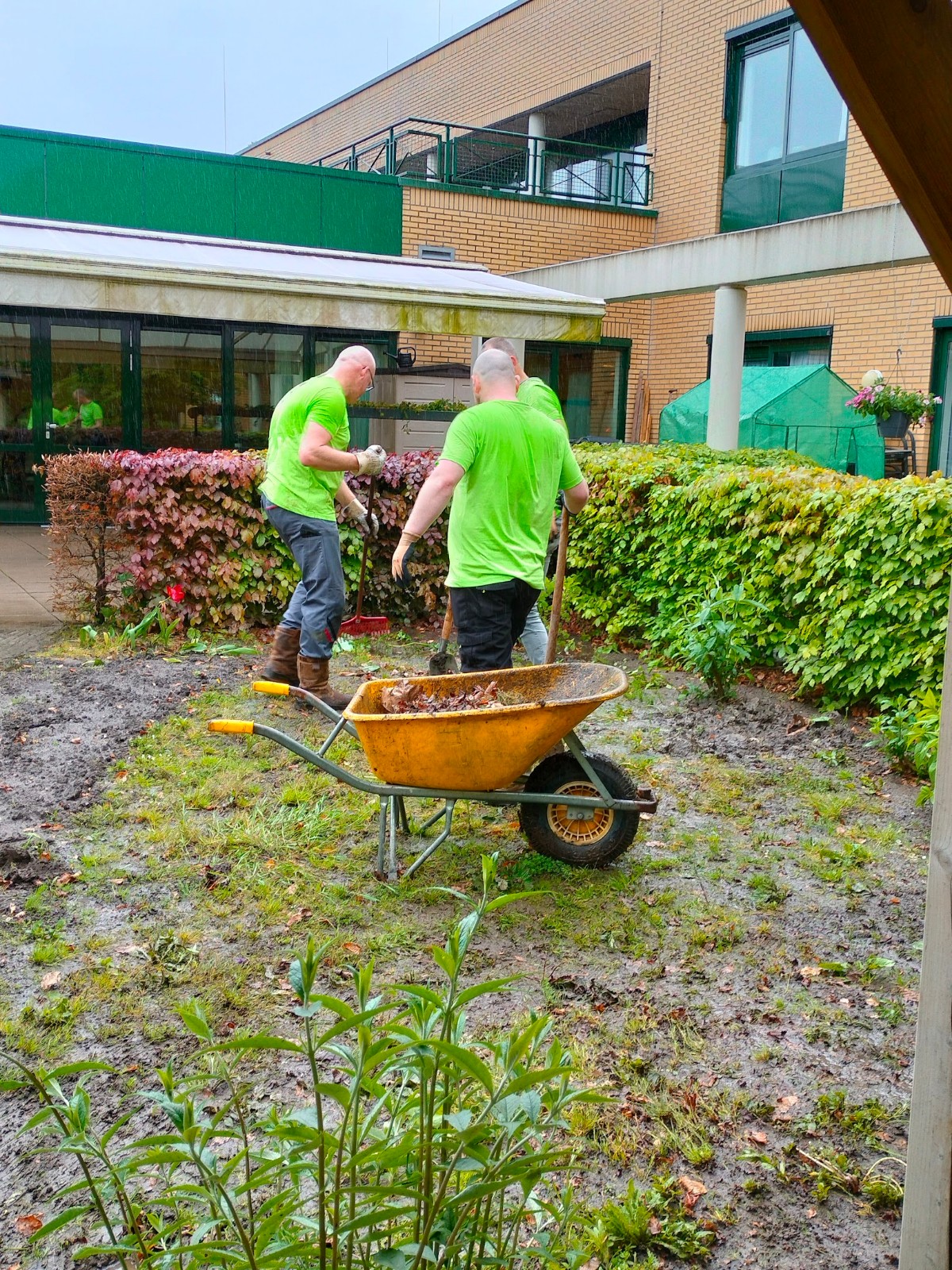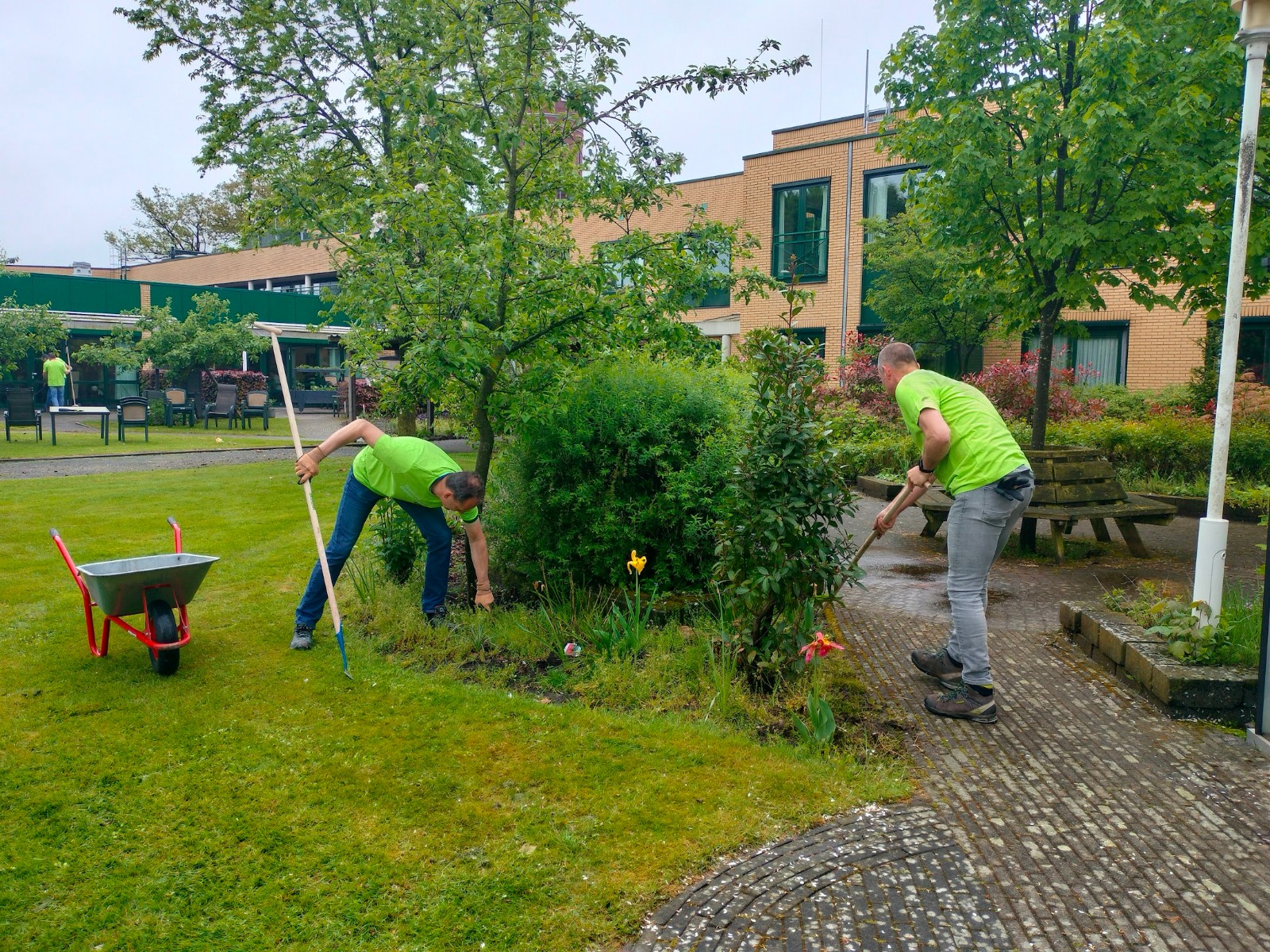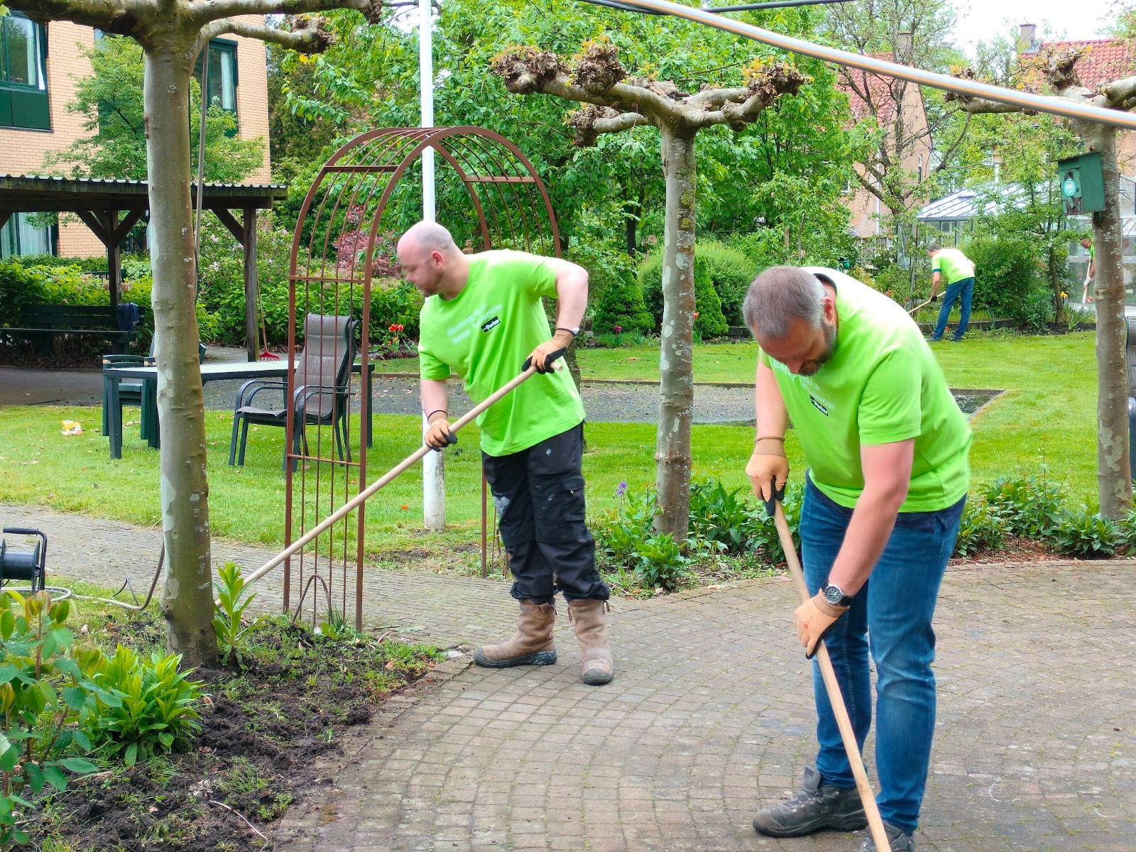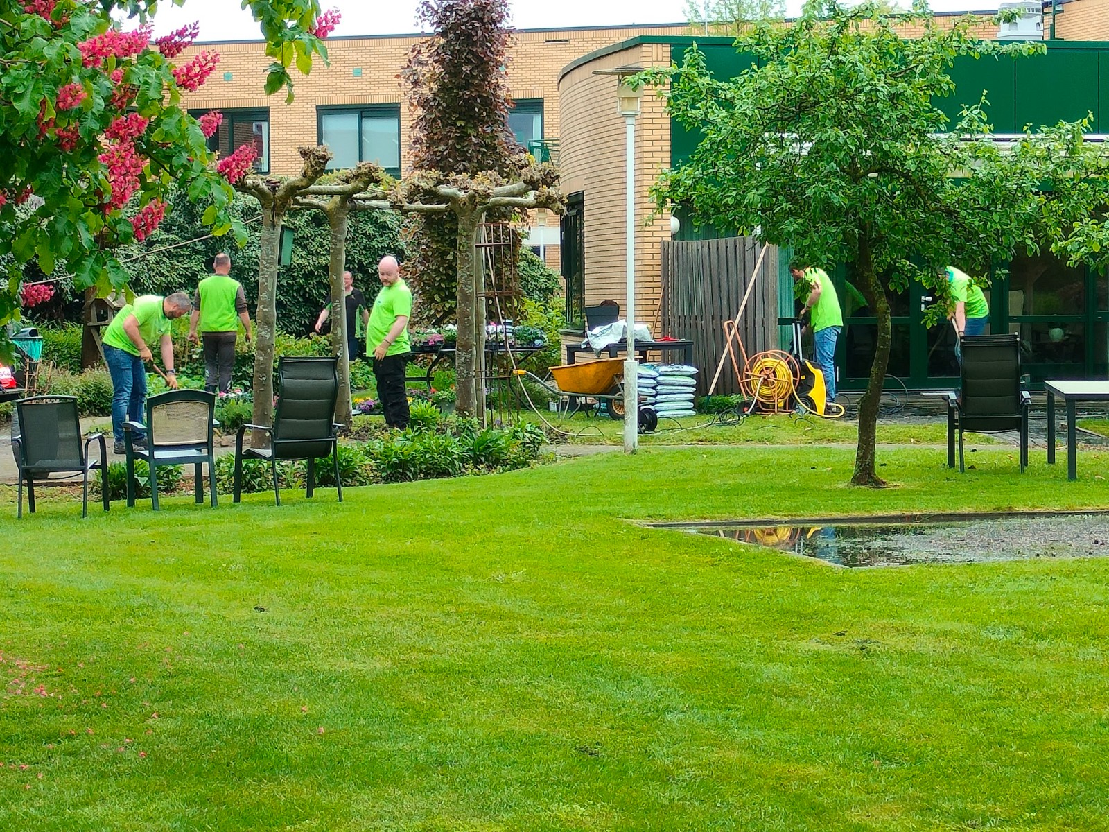 Medewerkers Parker Hannifin maken tuin woonzorgcentrum Gereia zomerklaar