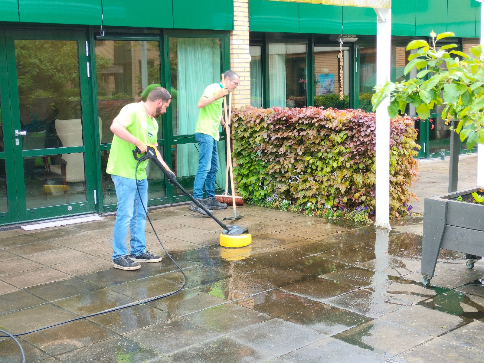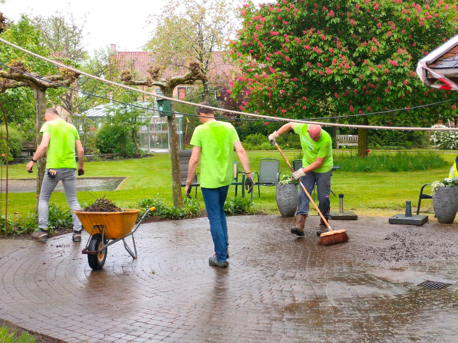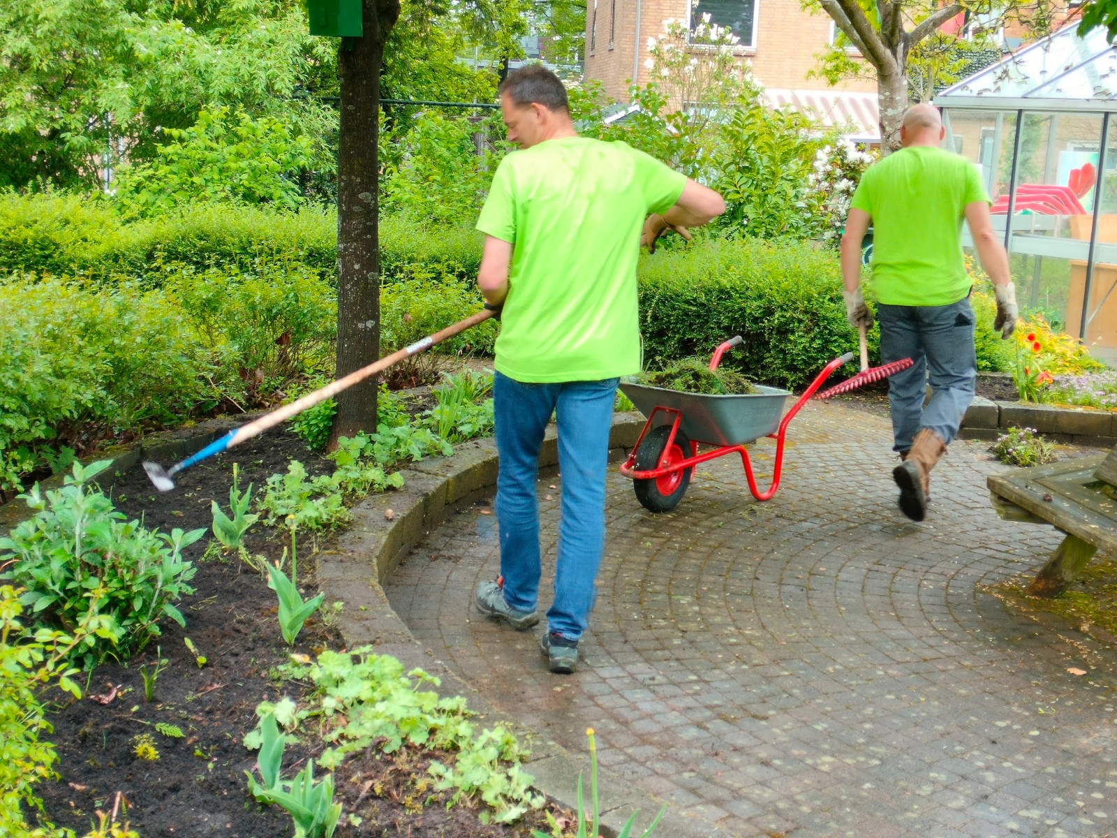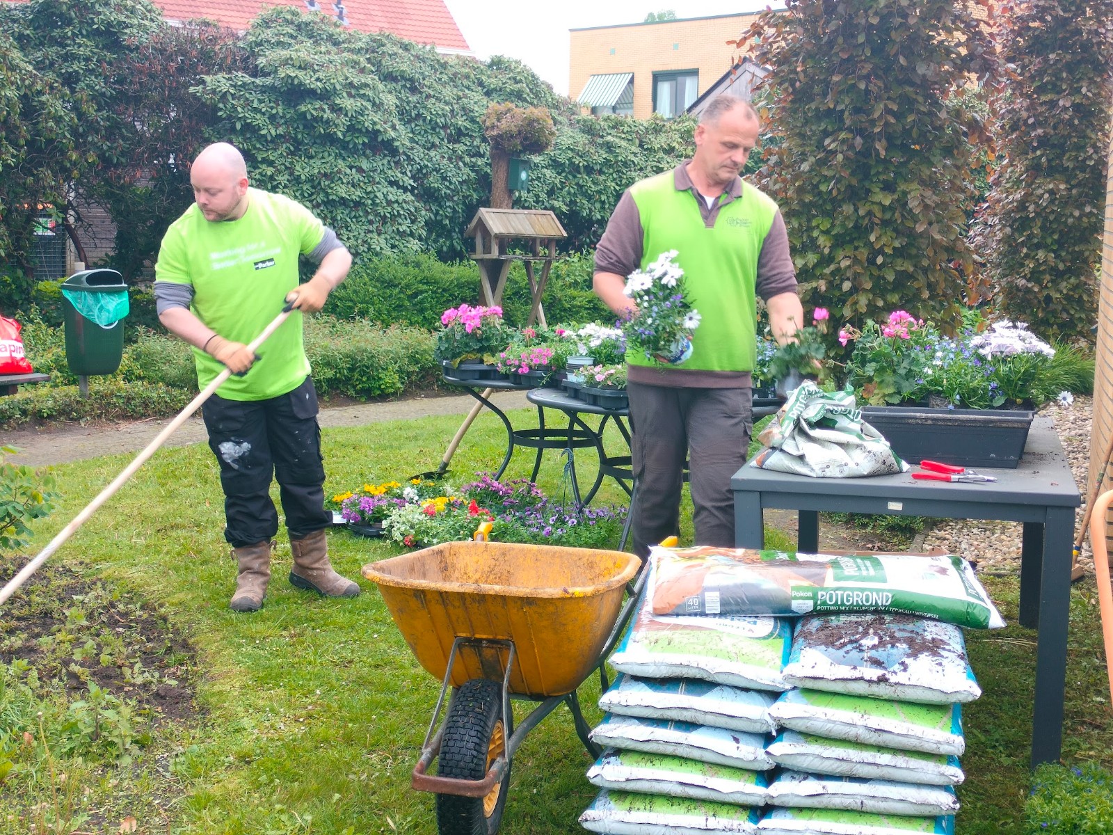 Medewerkers Parker Hannifin maken tuin woonzorgcentrum Gereia zomerklaar