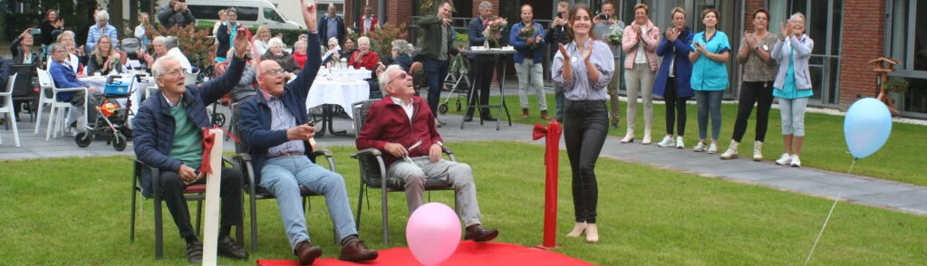 Onder de genodigden waren ook de noabers van De Eeshof, die daags voor Nationale Burendag ook een kijkje mochten nemen in de tuin. Na de officiële handelingen konden alle genodigden in de tuin genieten van feestelijke hapjes en drankjes en een vrolijke rollator dans act door verzorgenden van de Eeshof. De Edelweis Spoilers zochten deze ochtend daarnaast voor de muzikale omlijsting.